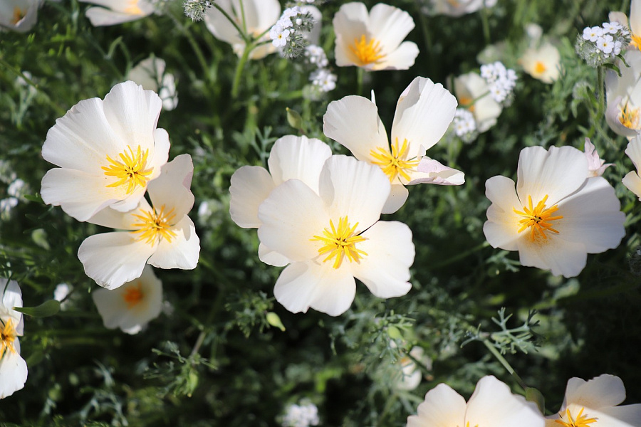 Семена эшшольции калифорнийской сорта Белый замок порадуют садоводов эффектным видом выращенного экземпляра. Компактный куст с серебристо-зелеными побегами и белыми чашевидными цветами отлично впишется в любую садовую композицию. Цветение продолжится с июня до октября. Семена эшшольции можно использовать при оформлении различных объектов: