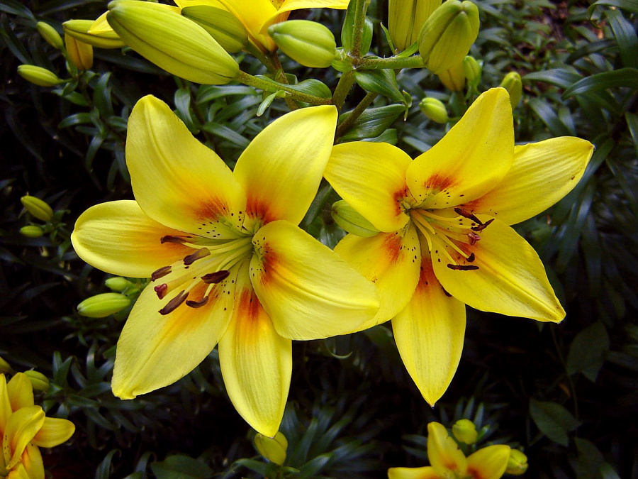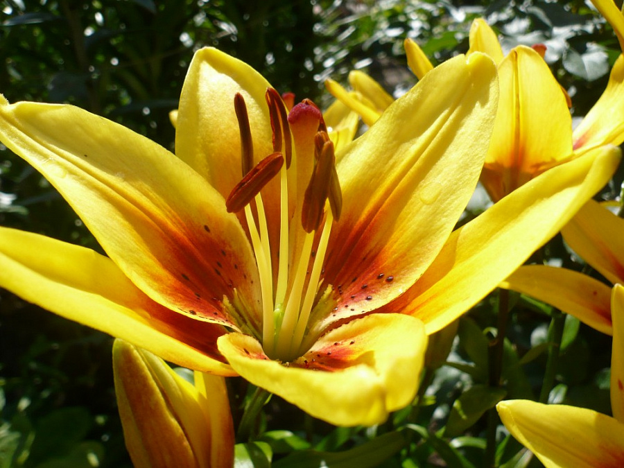 • Окраска цветка : желтые, с красно-коричневым основанием и пыльниками