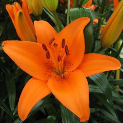 Лилия азиатская калурозо - это великолепное растение с ярко-оранжевыми цветками, которые радуют глаз своей красотой. Высота этой лилии может достигать до 95 см, что делает ее заметным акцентом в любом саду. Листья лилии азиатской калурозо имеют темно-зеленый оттенок и создают прекрасный контраст с яркими цветками.