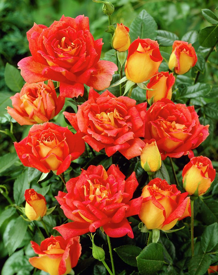 Роза чайно-гибридная Пиккадилли - это великолепное растение с ярко-красными цветками внутри и желтыми снаружи, которое поразит ваш взгляд своей красотой. Этот сорт отличается высокой морозостойкостью и предпочитает обогащенные почвы для процветания. Стебель данной розы прочный, листья имеют интересную форму, а размеры растения позволяют разместить его в любом уголке сада или огорода.