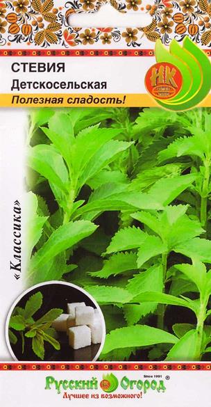 Семена стевии "Детскосельская" высевают с марта по май, используя рыхлую почвенную смесь. Хорошо культура растет при повышенной влажности и хорошем освещении. Через 7 недель рассаду пересаживают в открытый грунт. Время созревания — июнь — июль. Культура широко известна в роли естественного заменителя сахара. При этом она является в несколько раз его слаще и безвреднее. Растение из семян стевии "Детскосельская" получается высоким, до 80 см. Листья округло-продолговатой формы. Цветки мелкие, собраны в небольшие корзиночки.